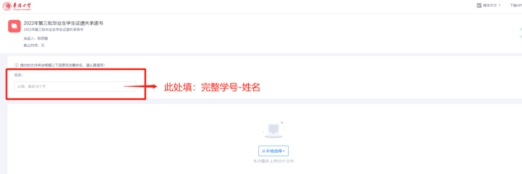 研究生证交至中心办公室,毕业前由中心统一前往学校相关部门办理离校手续,办理离校手续后还会退回给每位同学。如研究生证丢失,须下载填写《毕业生学生证遗失承诺书》(见附件1),手写签字盖手印,扫描后上传至云盘:https://pan.hqu.edu.cn/collection/a282ccf397cf9b34430a4c918b716ccb,上传界面填:完整学号-姓名(下图),文件名:学生证遗失承诺书。