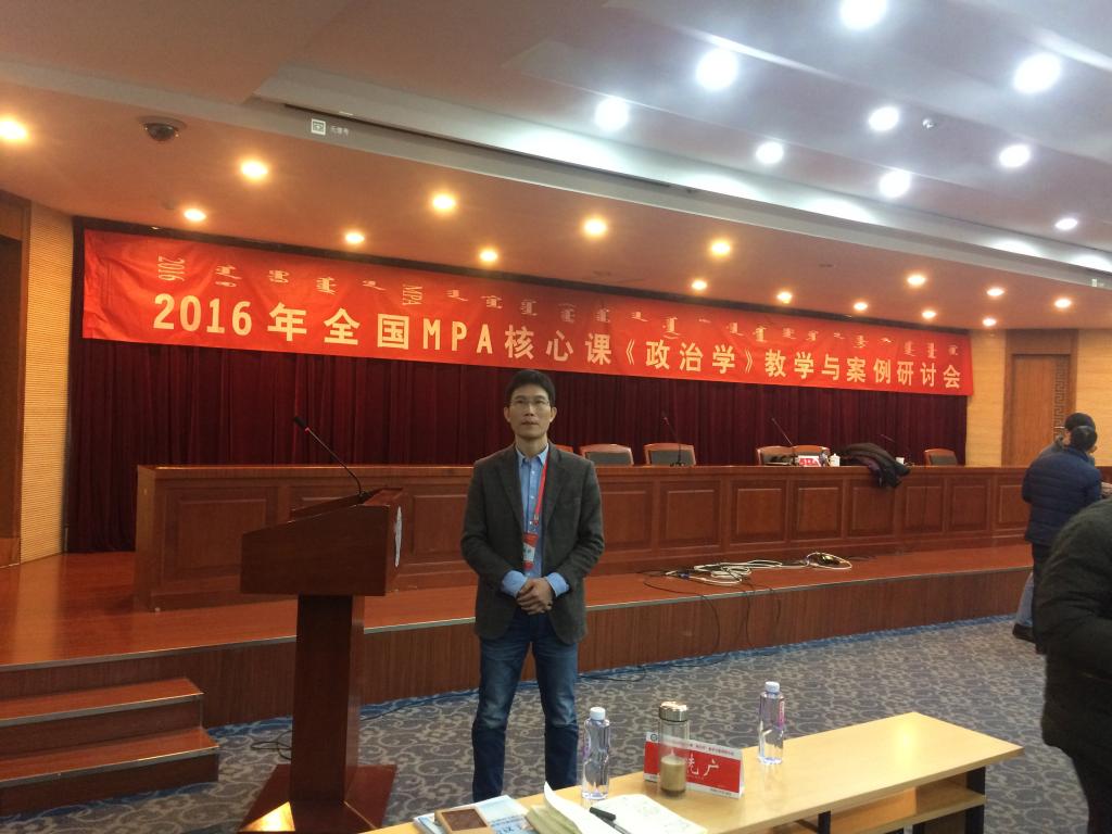 2016年12月10日至11日,由全国公共管理专业学位研究生教育指导委员会和教育部学位与研究生教育发展中心联合主办的“中国专业学位教学案例中心第22期案例教学培训暨2016年全国MPA核心课‘政治学’教学与案例研讨会”在内蒙古大学成功召开。来自北京大学、清华大学、吉林大学等全国高校的80多位教师参加了本次会议。我院派吴瑞财博士参加。