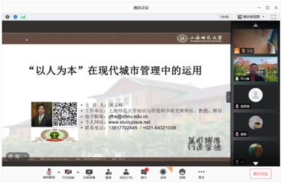 2020年10月17日上午,上海师范大学何云峰教授应邀作为政管学院公共管理名家讲坛第89讲的嘉宾,为我院师生云端做了一场主题为“‘以人为本’在现代城市管理中的运用”的学术讲座。本次学术讲座同时也是校庆60周年政管学院系列学术讲座的第一讲。汤兆云教授主持了本次讲座。我院部分教师和研究生近300人线上共同聆听了本次讲座。