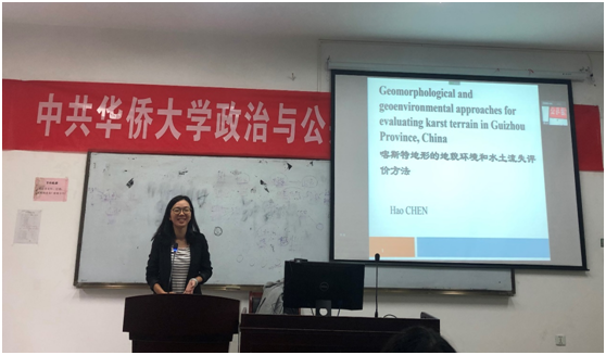 为促进学院学术交流和学术发展,政治与公共管理学院举办“政管·博士·周讲坛”系列学术讲座。12月15日下午,“博士周讲坛”第三讲在学院文种楼202室举行。本院陈昊博士做了“喀斯特地形的地貌环境和水土流失评价方法”的主题讲座。讲座由土地资源管理研究团队负责人梁发超教授主持。政管学院研究生和相关老师聆听了本次讲座。