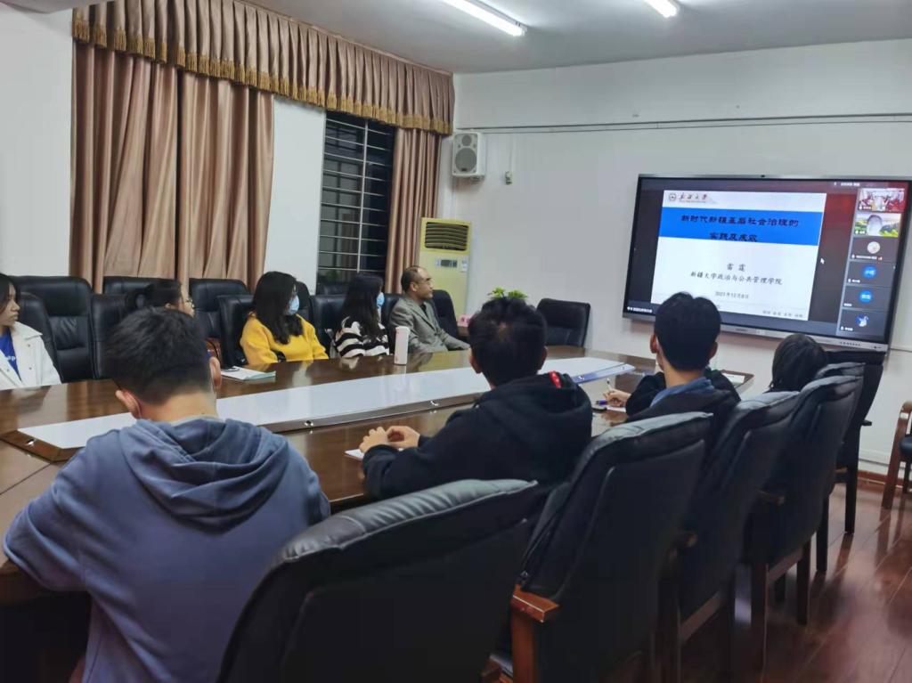 12月8日,应学院邀请,教育部公共管理类专业教学指导委员会委员、新疆大学雷霆教授主讲“新疆基层社会治理实践与成效”学术讲座。讲座由汤兆云教授主持,学院部分师生聆听了此次讲座。