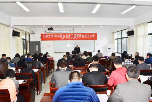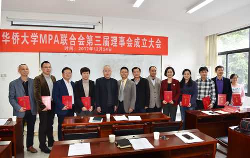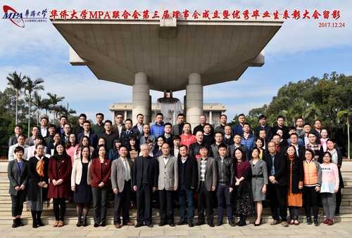 2017年12月24日,华侨大学公共管理硕士(MPA)联合会第三届理事会成立暨优秀毕业生表彰大会在文种楼201教室举行。政治与公共管理学院院长、公共管理硕士(MPA)教育中心主任蔡振翔教授、政治与公共管理学院党委书记林庆祥、学院副院长汤兆云教授和侯志阳副教授、MPA教育中心副主任潘新美副教授和赖诗攀副教授出席大会,全体联合会成员和优秀毕业生参加大会。会议由林庆祥书记主持。