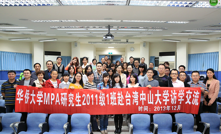 为更好的了解台湾公共管理实情和公共管理领域的最新研究进展,加强与台湾高校在公共管理领域的学术交流。12月9日至15日,华侨大学公共管理学院MPA研究生2011级1班一行26人赴台湾进行访学交流,走访了台湾中山大学、高雄市议会、高雄1999服务专线等机构。