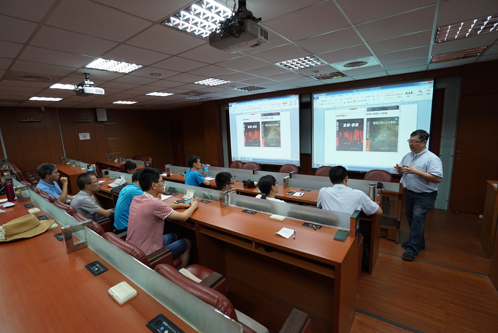 6月18日上午,代表团与中山大学MPA研究生一起聆听了中山大学管理学院陈碧珍老师主讲的《政策分析》课,并与公共事务研究所MPA研究生分享了学习心得。课堂上,陈老师对公共政策理论既作学理剖析,又引用当前台湾行政事务中广为市民关注的热点话题进行案例分析。在与公共事务研究生MPA研究生交流中,发现他们中既有初入公职的青年,又有年近五旬的中年人,求学上进的进取心真是不分彼此,但是对祖国大陆的了解还是不够,代表团成员纷纷个别与当地MPA研究生对话,并热情邀请他们多到大陆走访交流。