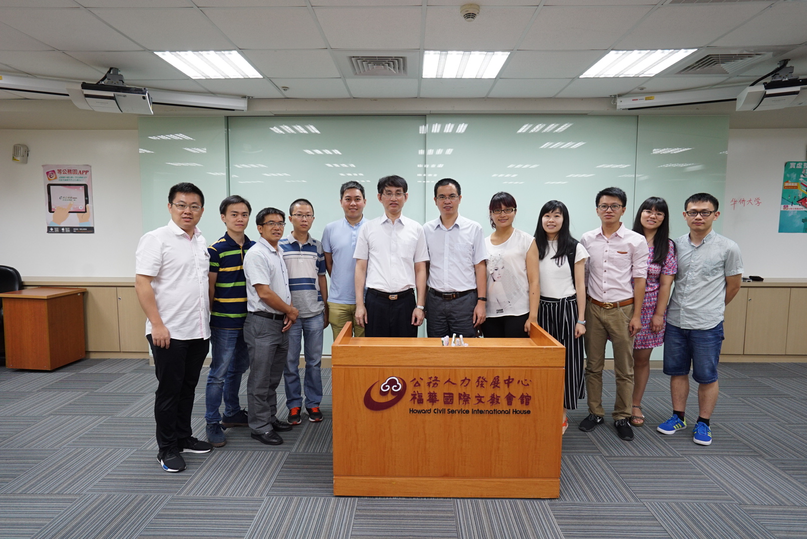 6月20日,代表团参观了台北行政院人事行政总处公务人力发展中心。台湾行政院人事行政总处公务人力发展中心张沛华副主任发表了热情洋溢的欢迎辞,公务人力发展中心秘书处蔡逸群主任为大家作了详细的介绍。中心主要职能是对行政机构的中高级公务员进行培训,以提升他们的公共政策水平和公共服务能力,建设更专业的公务员团队。培训方式既有集中培训,也有网络培训,培训内容以公共事务管理为主要内容,授课老师以行政机构中的高层领导和著名企业的管理者为主,网络培训主要依托中心建设的“e等公务园”学习网进行,培训工作形成了产官学共同行动学习平台,同时所有的培训费用由中心支付。公务人力发展中心拥有自己的大楼,大楼于2000年启用,占地约1.3万平方米,地上地下共17层,楼地板面积约4万多平方米,兼有教学、会议、行政、住宿、餐饮、休闲及公共服务等功能,大楼由中心自行设计完成,各种设施都很好地满足了培训的需要,还为残障人士专门设计了爱心房,充分体现了以人为本的理念;建筑在很多细节中都体现了节能环保的概念,成为当地首批绿建筑示范基地。为有效经营好大楼,2001年中心就将大楼的经营权委托给福华大饭店,15年来的委托经营不但满足了中心的人力培训需求,减少了中心的人力、经费等行政成本,更为中心创造了良好的经济效益,该运营模式还因此获得民间参与公共建设金擘奖。