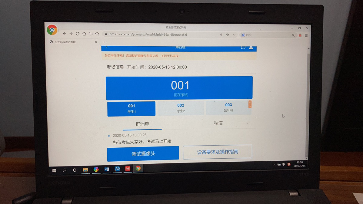 此次网络复试模拟演练旨在测试考官、模拟考生和工作助理熟练掌握网络面试的各个环节,并对面试所用仪器设备进行最后的测试,以确保研究生网络复试的顺利进行。
