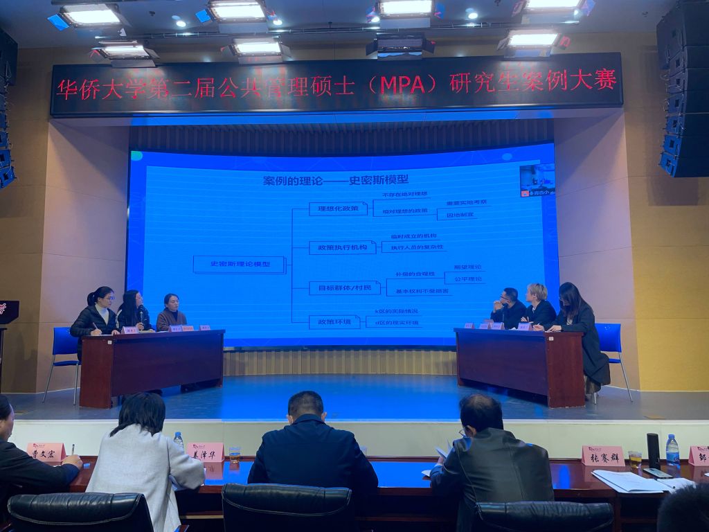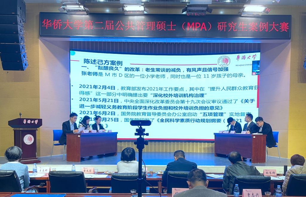 2022年1月1日,华侨大学第二届公共管理硕士(MPA)研究生案例大赛在明德堂举行。此次大赛由华侨大学研究生院、政治与公共管理学院主办,华侨大学公共管理硕士(MPA)教育中心承办。大赛旨在促进研究生深入调查和关注公共管理实际问题,提高其利用科学方法解决现实公共管理问题的能力。